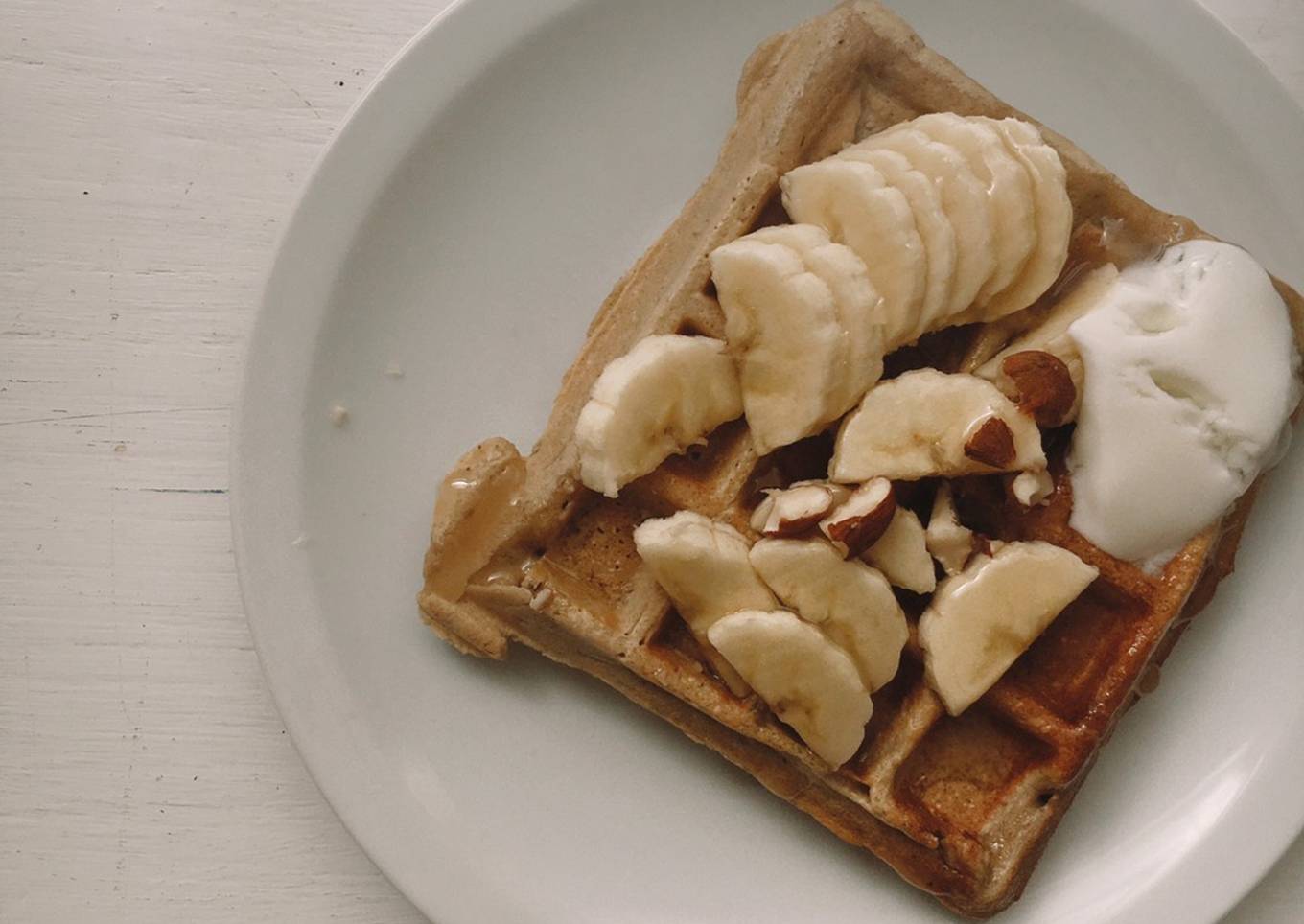 - Verter un poco de la preparación en una wafflera. Una vez listo el waffle agregar los toppings que quieras!! Yo le puse miel y banana