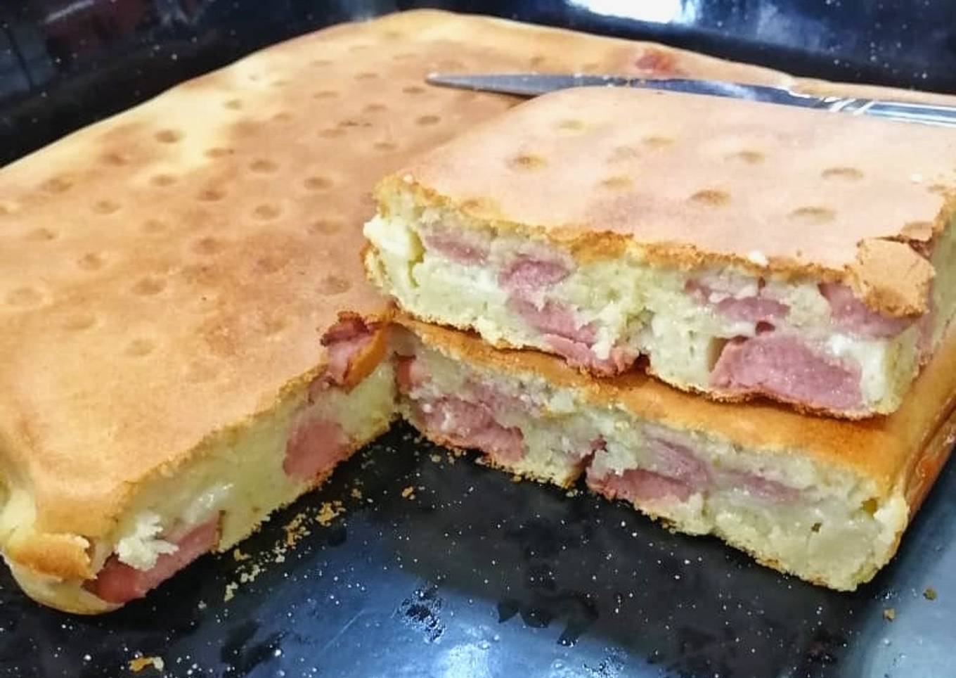 - Cubrir el fondo con la preparación de la masa, una base finita (recuerden que leuda) agregar las fetas de Fiambre y Queso y cubrir con más masa