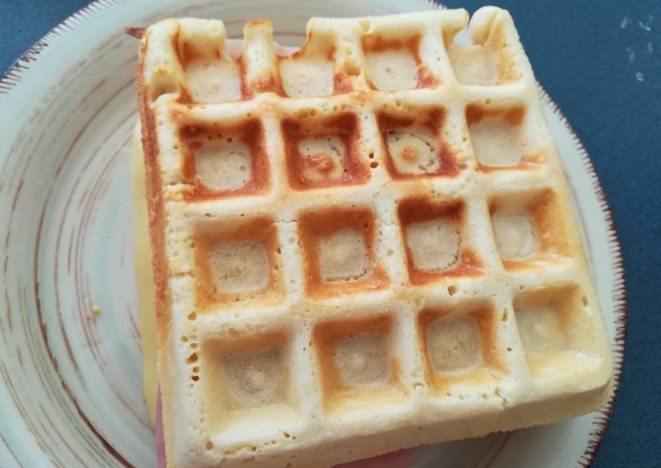 - Calienta la wafflera y unta con mantequilla. Derrama suficiente masa que la cubra.