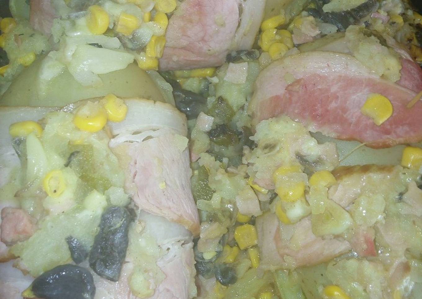 - Y encima de todo ponemos el mismo relleno que le quitamos a las papas y Mezclamos muy bien con las manos bien limpias o si gustas hacerlo con cuchara puedes hacerlo