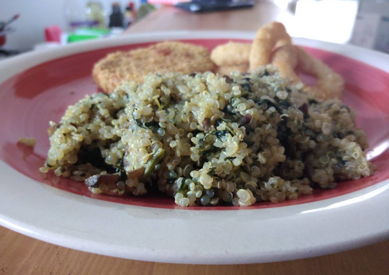 Quinoa con espinaca y champiñones