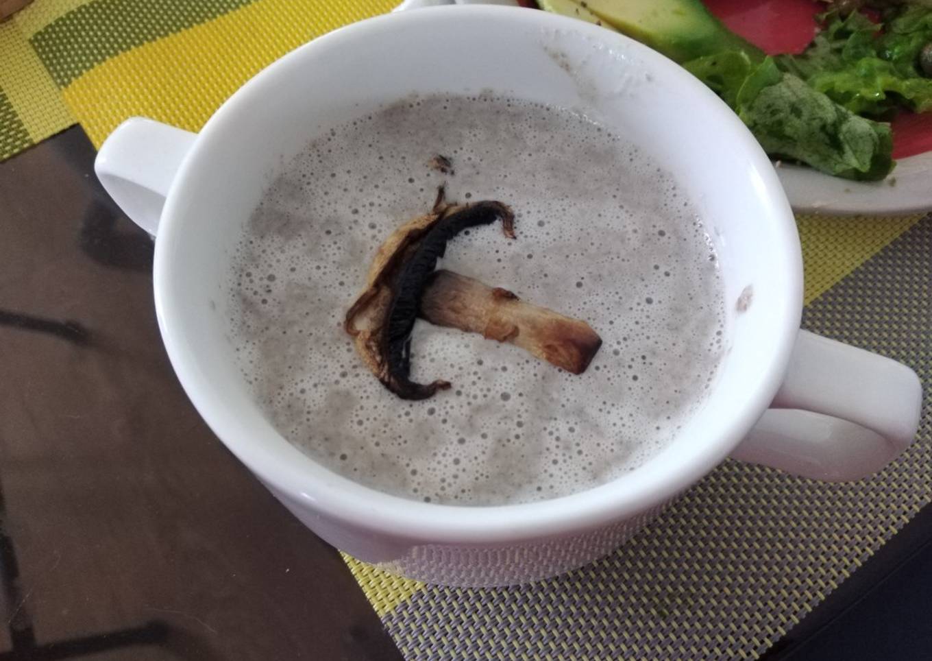 - Mientras, dorar las láminas de champiñones reservadas para la decoración. Servir la crema espumosa calentita, con un par de champiñones de decoración y a disfrutar!