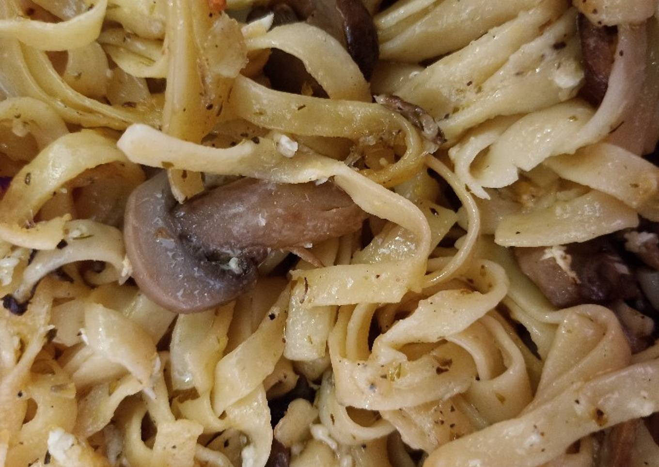 - Una vez hechos, se escurren los tallarines y añadimos a la sartén, junto a un toque de orégano, y removemos todo bien.