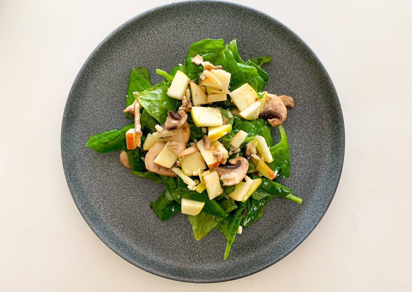 Steps to make to make Ensalada de espinaca, champiñones y manzana