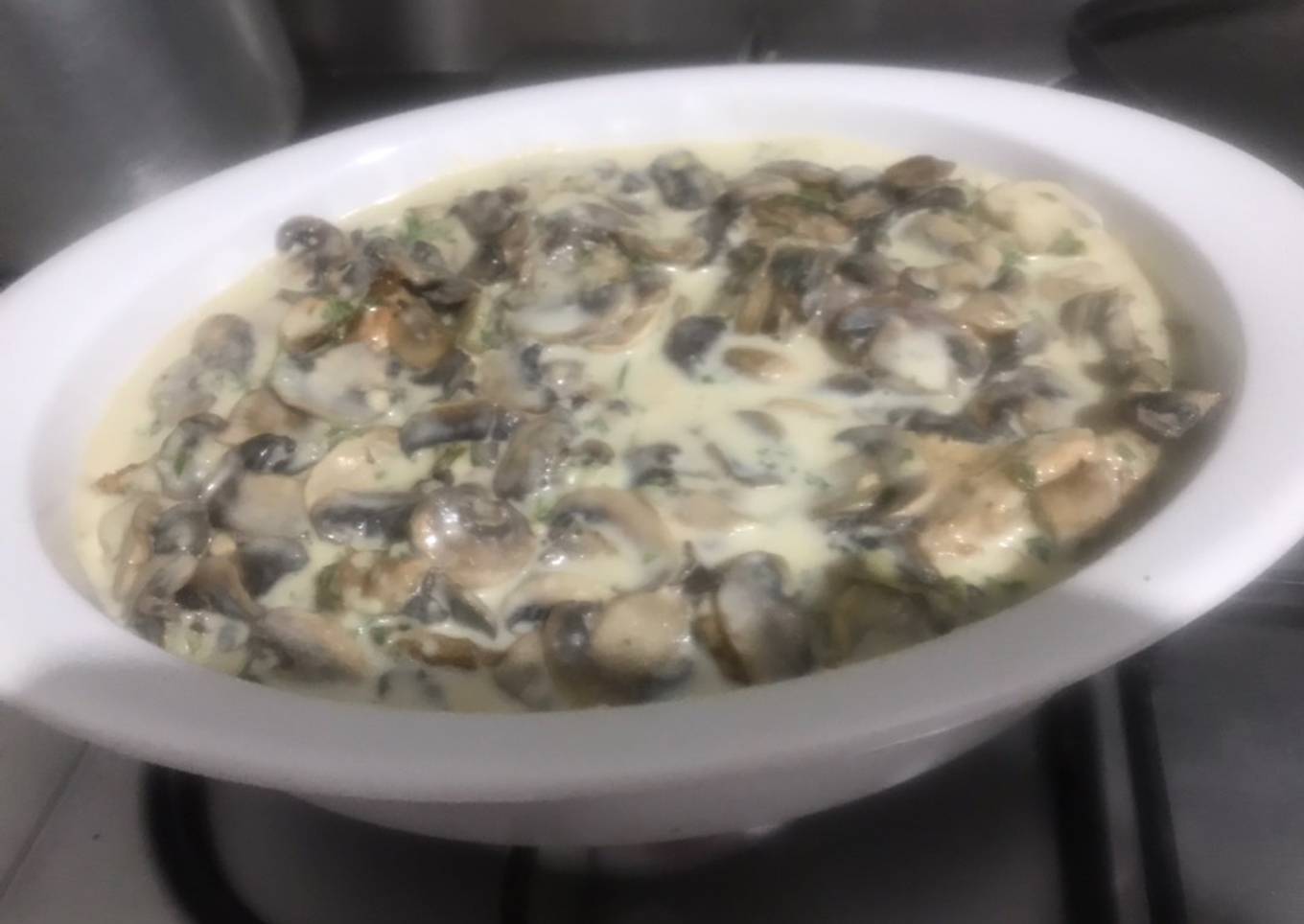 - Los champiñones los láminas y los asas sin aceite una vez asados los incorporas a la salsa dejar hervir y listo todo a disfrutar