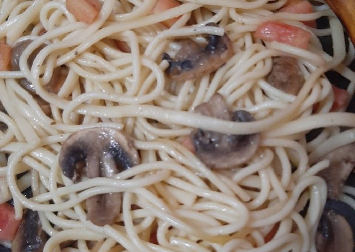 Hey everyone, it is Jim, welcome to our recipe site. Today, I'm gonna show you how to make a special dish, Tallarines con tomates y champiñones salteados. One of my favorites. This time, I will make it a little bit tasty. This will be really delicious.