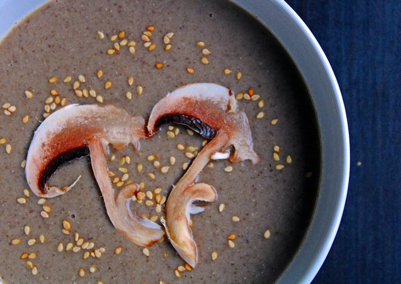 - La he decorado con unas láminas de champiñones muy finas y un poco de sésamo tostado.