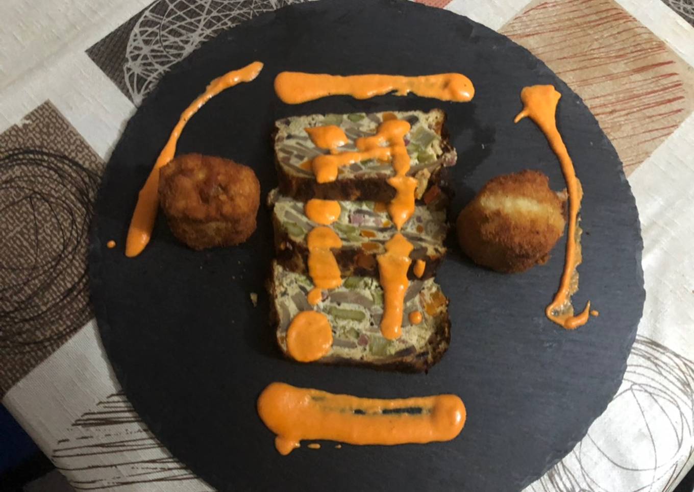 - Y con las porciones del pastel de champiñones emplatamos.