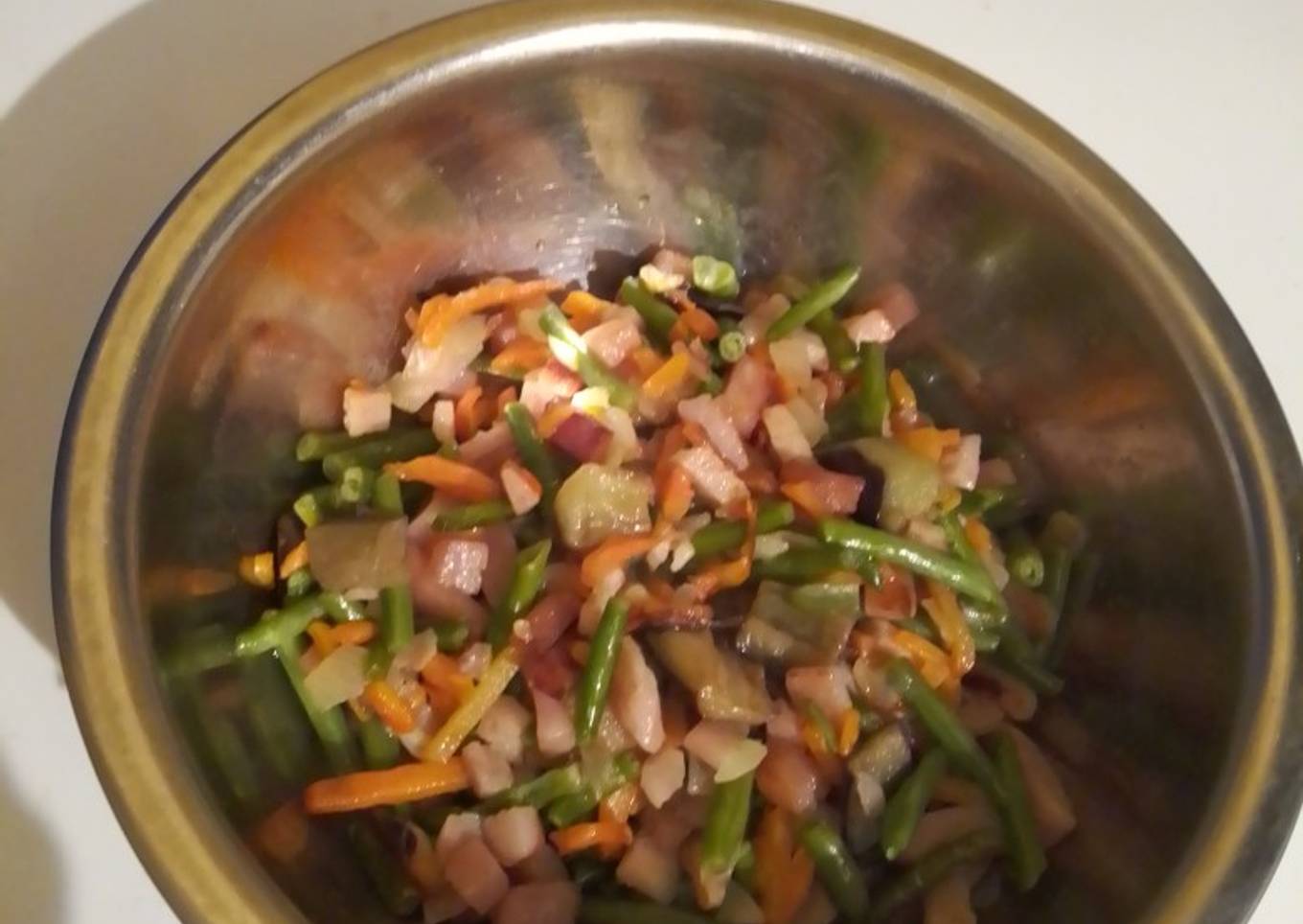 Steps to make to make Ensalada de verduras con bacon y champiñones 👩🍳🍴