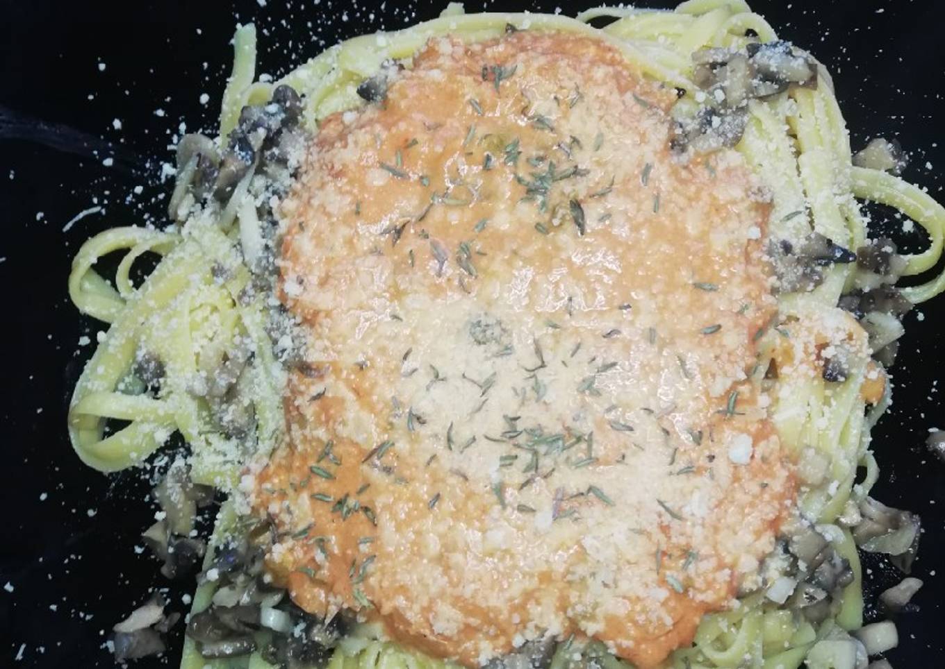 Fettuccine con champiñones y salsa cremosa rabiosa