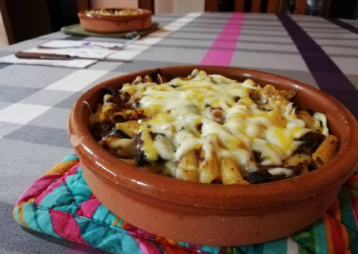 - Hervimos los macarrones y los mezclamos con la salsa que hemos elaborado. Después lo pasamos a un recipiente apto para horno (yo he usado 2 individuales).