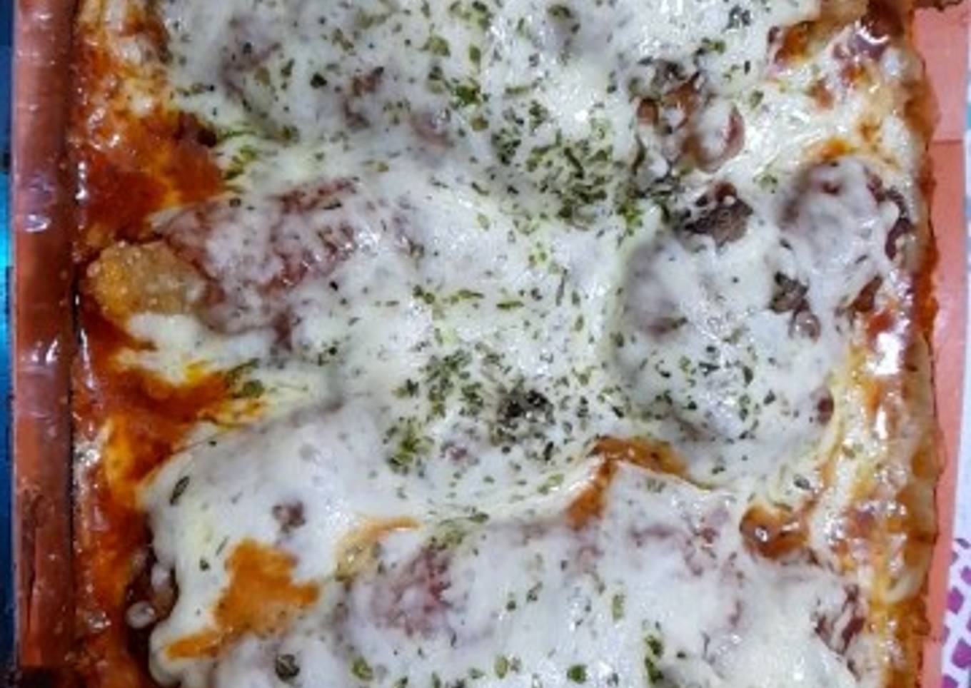 - En un bol añadir una salsa de tomate, luego incorporar las pechugas de pollo doradas y añadir más salsa de tomate sobre ellas, y luego una capa de queso rallado