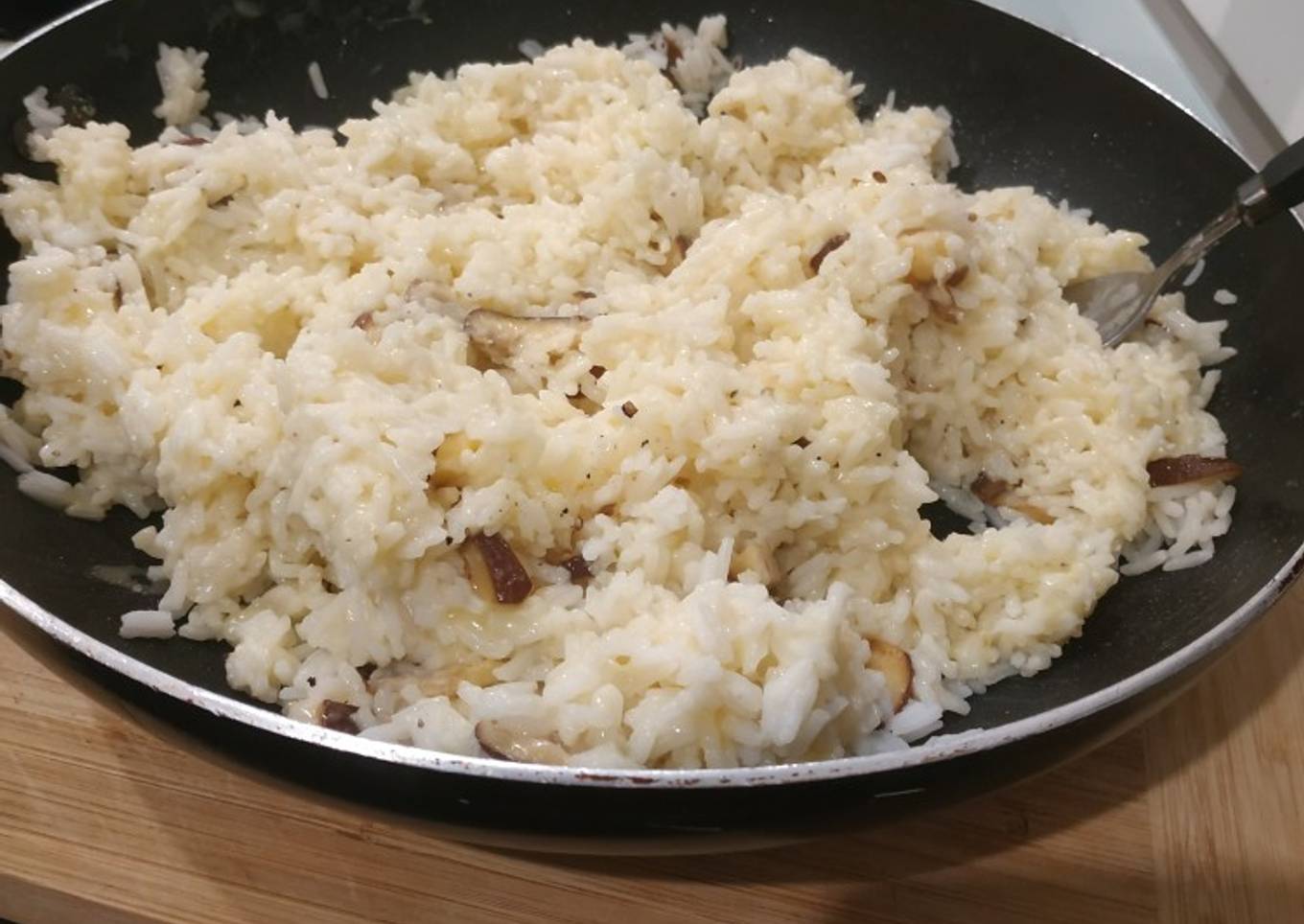 Arroz con queso y champiñones
